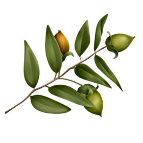 アルガンは、主にモロッコの砂漠地帯で自生してきた木です。その実に含まれるオイルは、リノール酸などの含有が高く、抗酸化作用に優れています。モロッコでは、化粧品だけでなく、食用オイルとしても使われており、特にローストしたアルガンオイルは香ばしくとてもおいしいです。化粧品では、お肌を柔軟に、滑らかに整えるエイジングケアオイルとして配合しています。