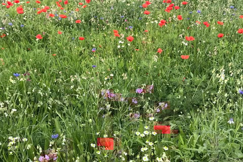私たちのハーブの野原での生物多様性は、私たちの環境議題の項目です。約10,000m²の耕作可能な土地の再生について話し合っています。ワイルドフラワーの野原はすでに合計7,410m²に配置されています。蜂に優しい290種の木を備えた防風林は、隣接する畑からハーブの野原を保護します。さらに、歴史的にも古い4種のフルーツの木を敷地内に植えました。